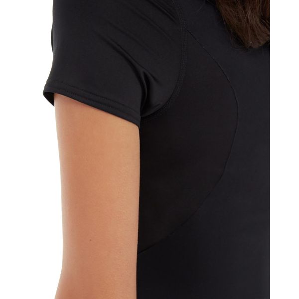 When you're too far to turn back, thank yourself for choosing the Desiree Fitness Tee. Its ultra-lightweight, ultra-breathable fabric wicks sweat away from your body and helps keeps you cool for the distance.