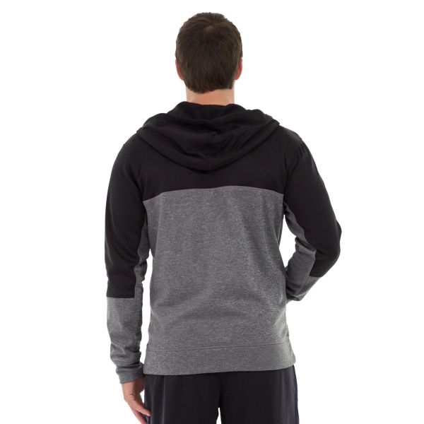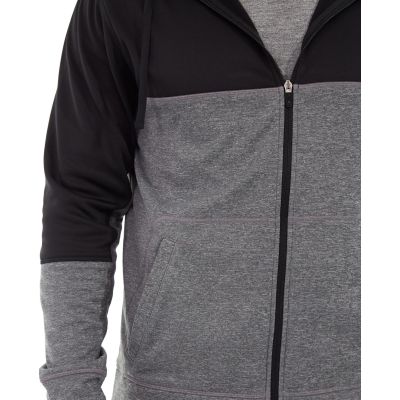 • Full-zip gray and black hoodie.