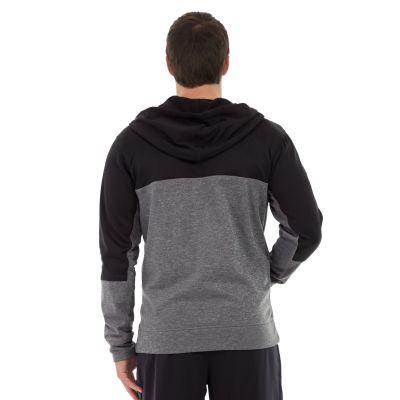 Gray and black color blocking sets you apart as the Hero Hoodie keeps you warm on the bus, campus or cold mean streets. Slanted outsize front pockets keep your style real . . . convenient.